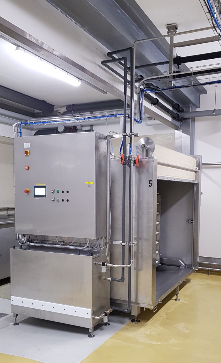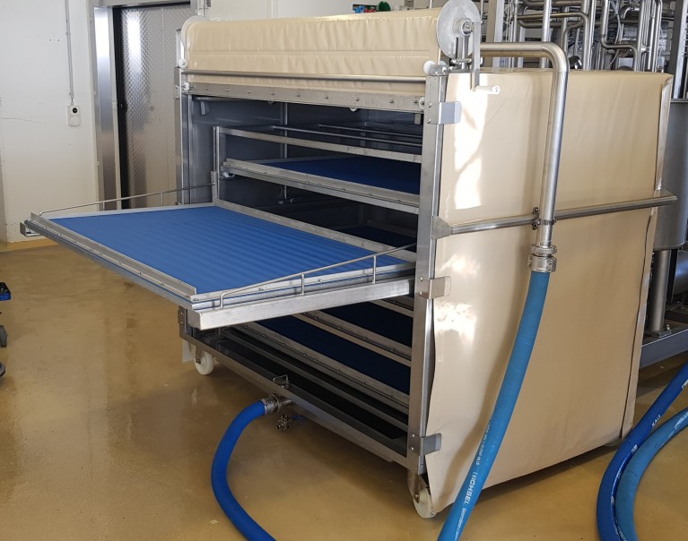 Abtropf- Schubladenwagen in CIP-Zelle