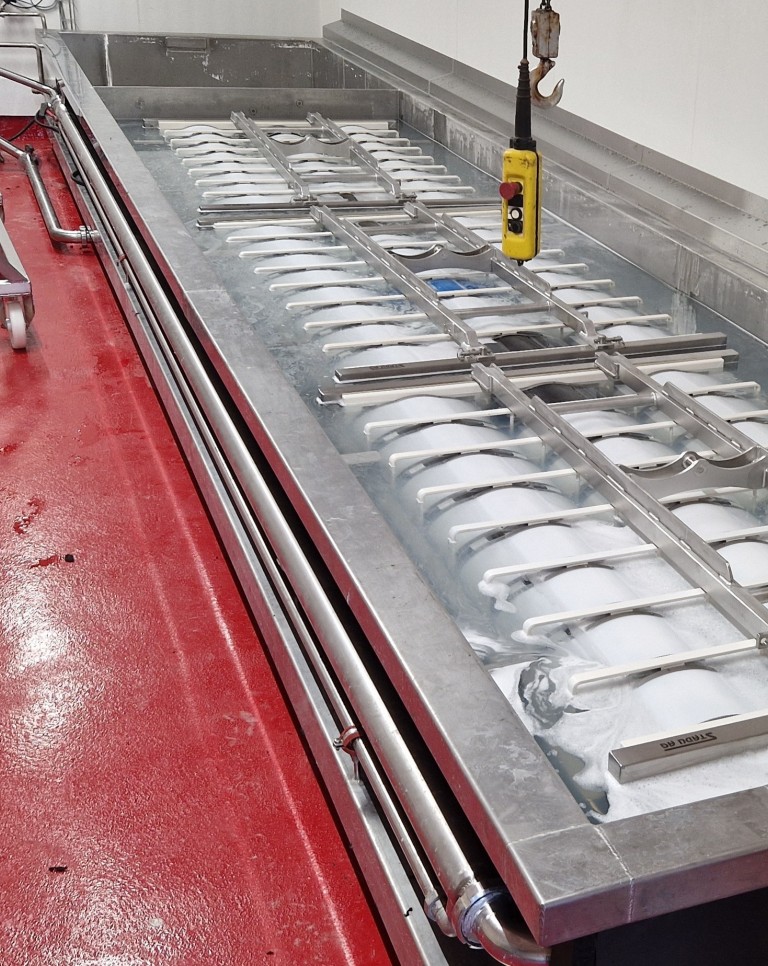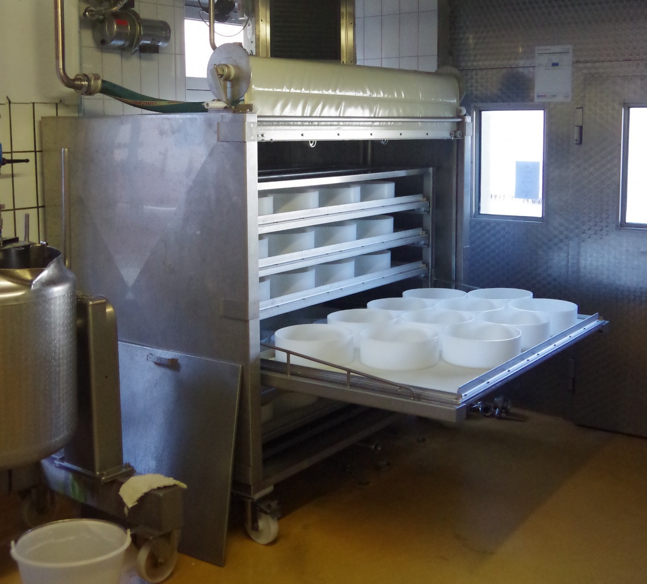 Käseabtropfzelle mit CIP-Reiniung und automatischem Käsewenden.