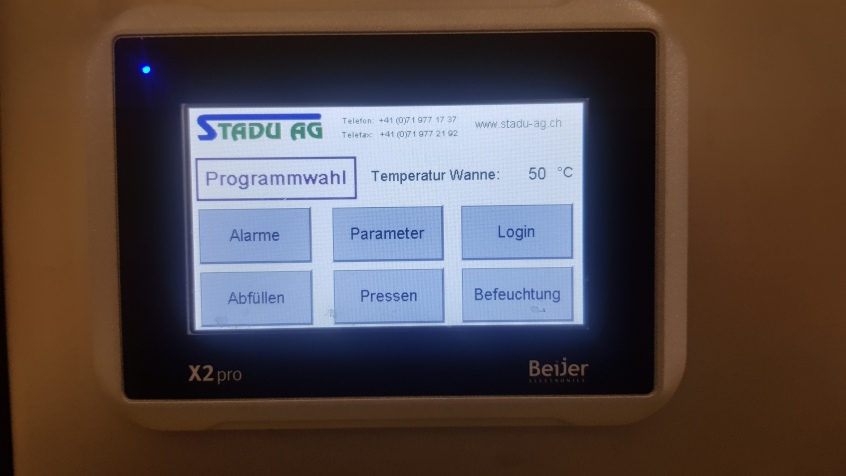 Abfüll- und Presswanne für Direkteinschwemmung mit automatischer Bruchverteilung.Moderne SPS-Steuerung mit Touchscreen-Bildschirm.