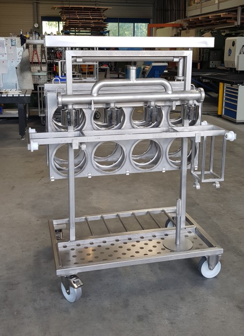 · Nur Luftanschluss nötig. Fahrbar mit Rollen oder stationäre Montage mit Nivellierfüssen.
