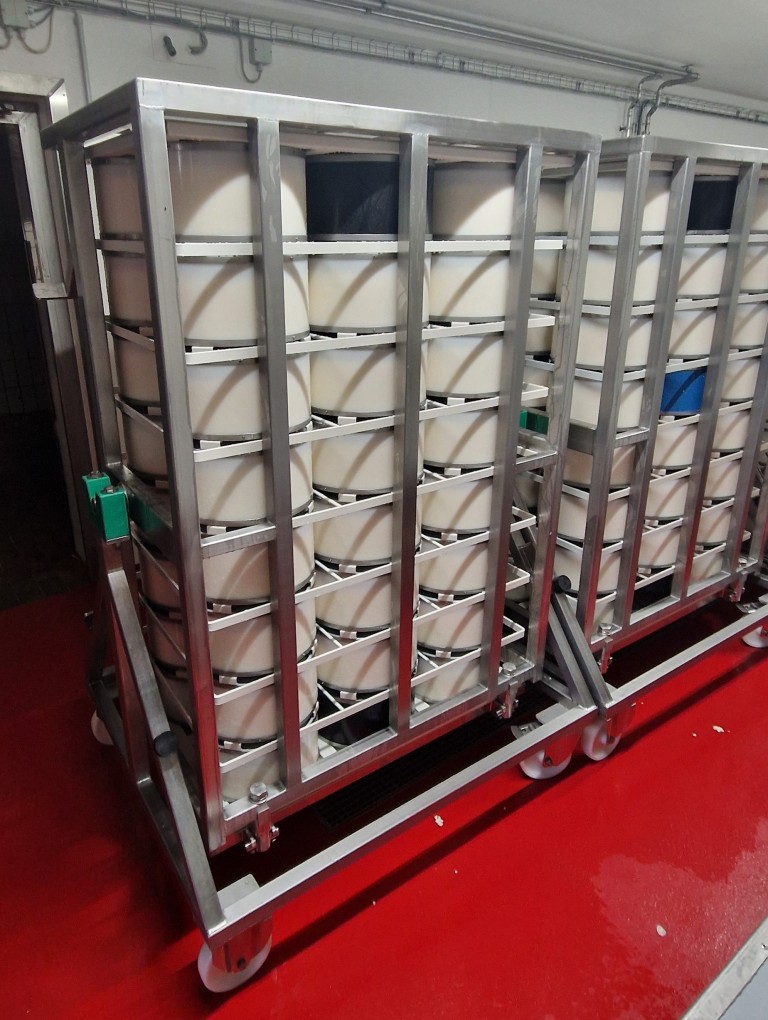 Wenn Sie eine weitere Charge Käse herstellen möchten, bieten wir Ihnen kundenspezifische Abtropflösungen an. Je nach Chargengrösse und Anzahl stellen wir einfache Schubladengestelle, Abtropf- und Reinigungszellen oder aber auch automatisierte Abtropf- und Wendesysteme her.