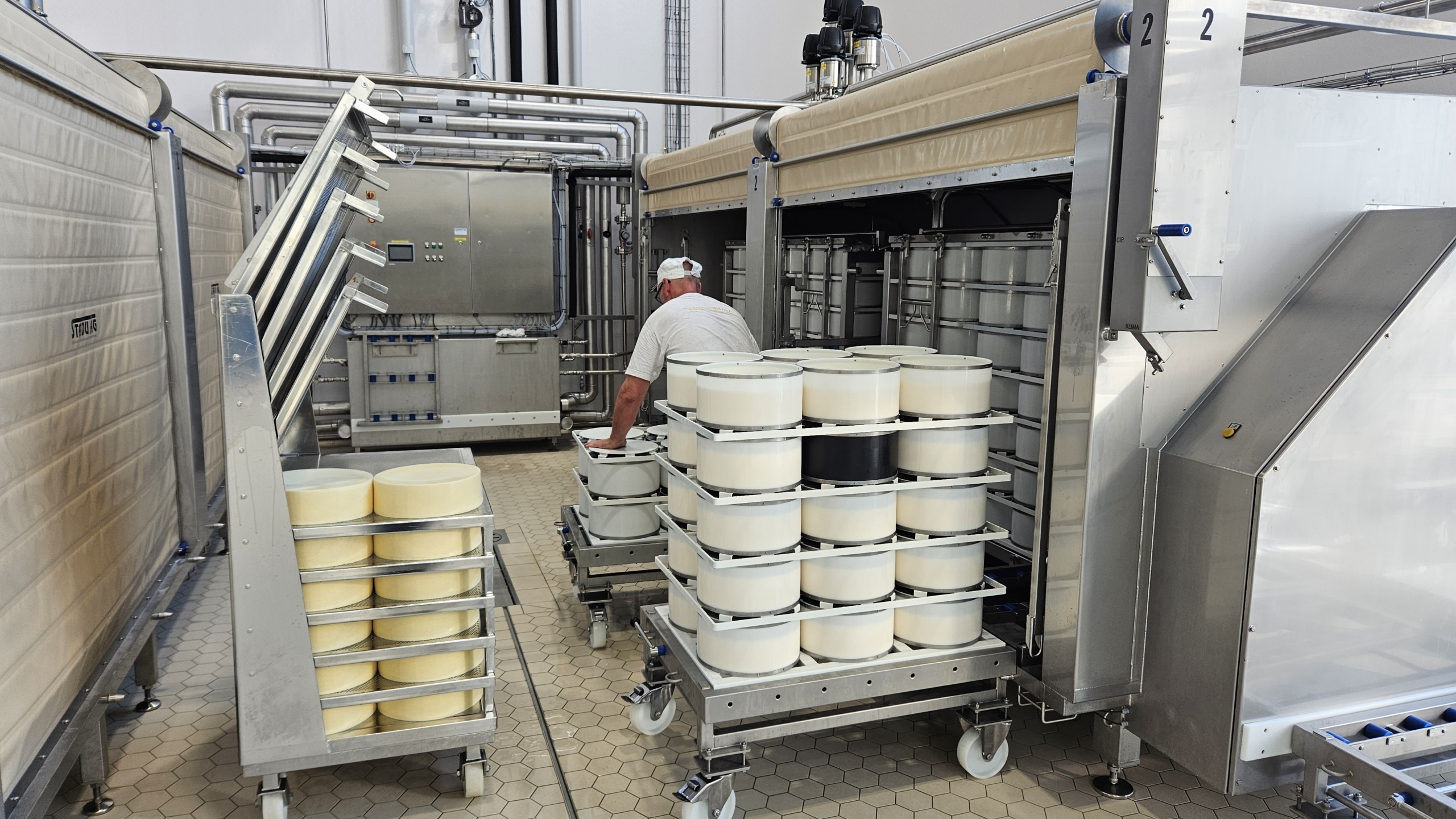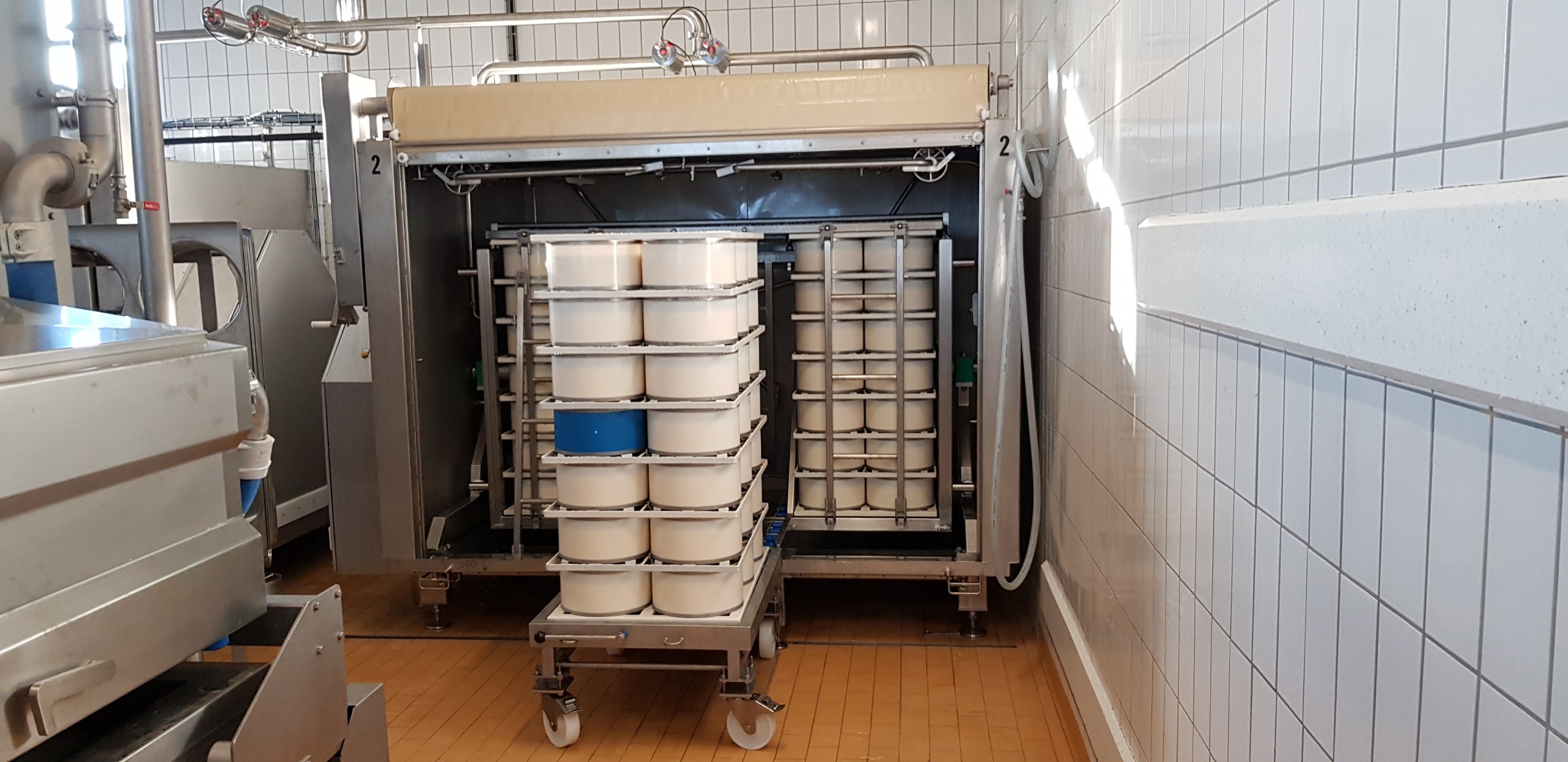 Käseabtropfzelle mit CIP-Reiniung und automatischem Käsewenden.